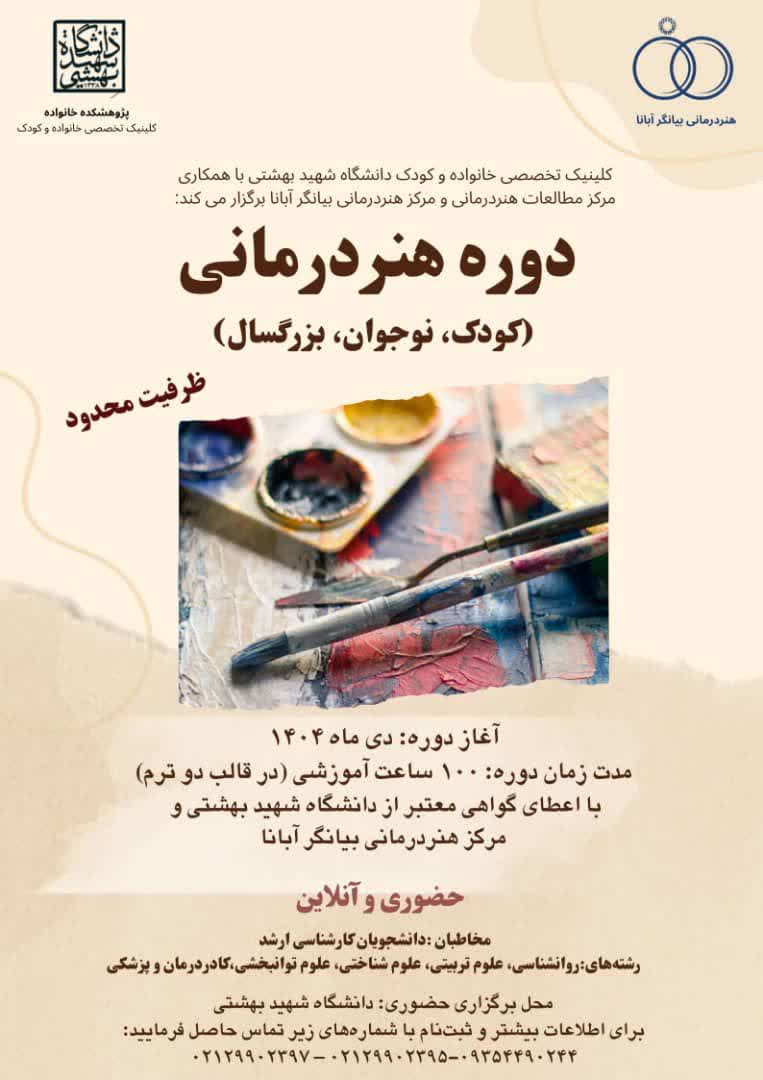 🎨 آغاز ثبت‌نام دوره تخصصی هنر‌درمانی(کودک، نوجوان، بزرگسال)
