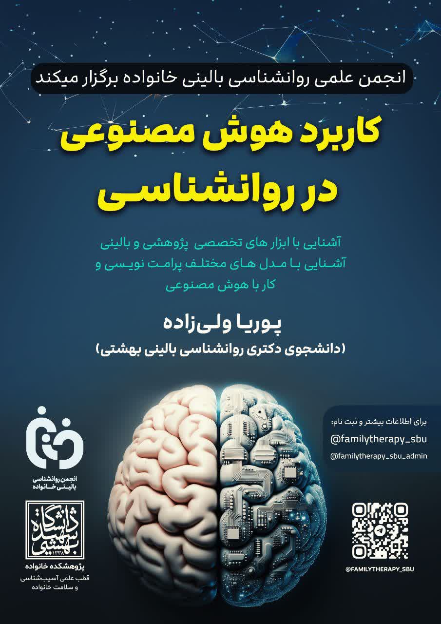 انجمن علمی روانشناسی بالینی خانواده دانشگاه شهید بهشتی برگزار میکند: کارگاه کاربرد هوش مصنوعی در روانشناسی