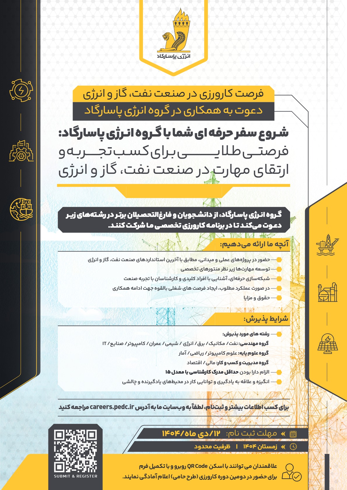 فرصت کارورزی در صنعت نفت، گاز و انرژی: دعوت به همکاری در گروه انرژی پاسارگاد