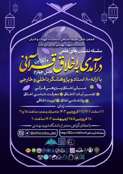 سلسله نشست های علمی "درآمدی به اخلاق قرآنی" در ماه مبارک رمضان از 21 اسفند 1402 تا 27 فروردین 1403 برگزار می شود.